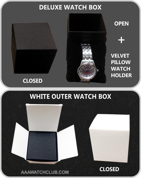 Stainless Steel-Series models features: Nice sized case (40 mm) for men and (32 mm) for ladies. The Mens version features an elegant Textured Stainless Steel Dial with color matching Roman Numeral & Linear Raised Hour Indexes; The ladies will enjoy a beautiful Mother-of-Pearl Dial with color matching Raised Hour Indexes with Faux-Diamond Inset; Super Break & Scratch-Resistant Sapphire Glass, Stainless Steel Screw-on case back, and 3 ATM (100 Feet) Water Resistant.
